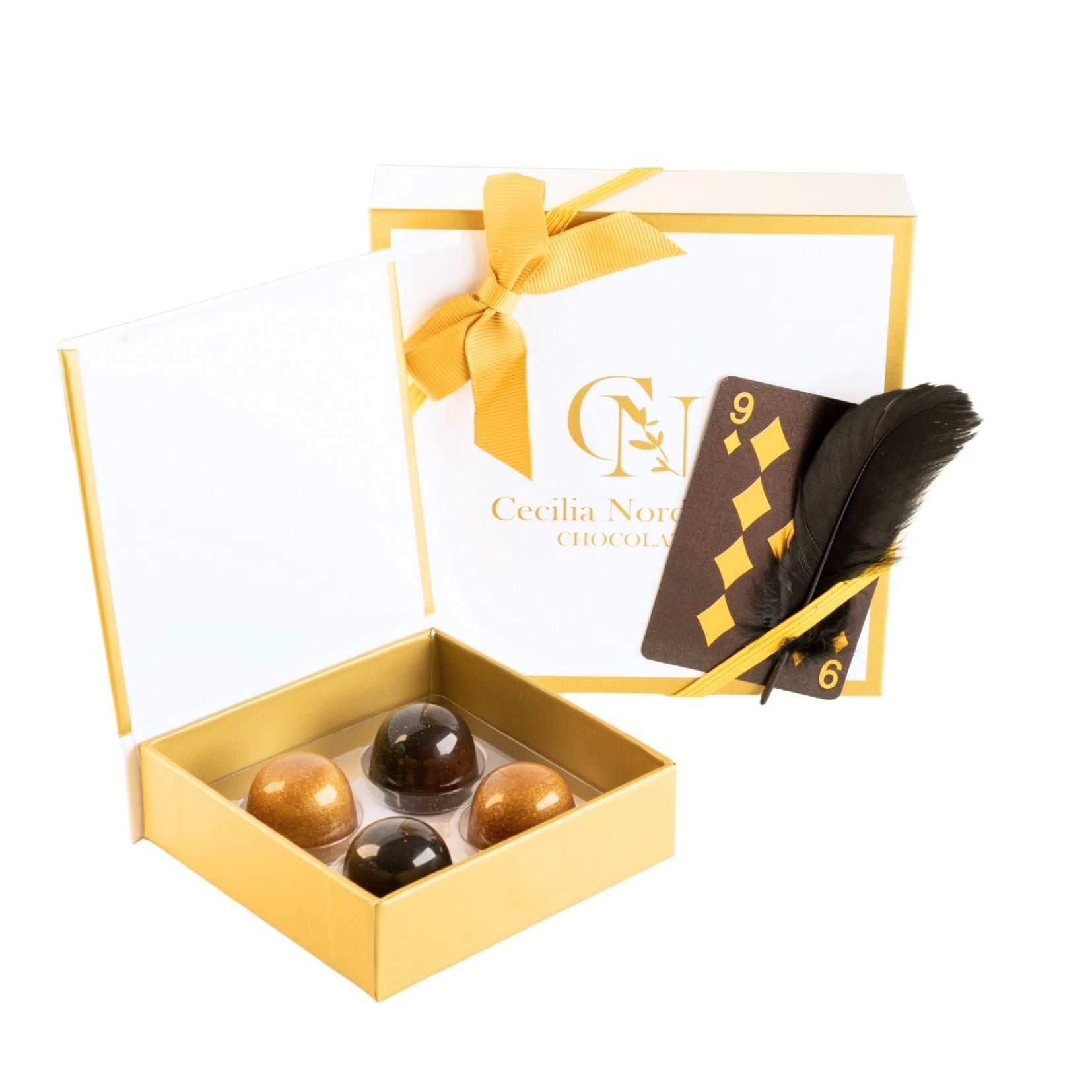 Oavsett om du letar efter en gåva som imponerar, vill unna dig själv något extra, eller planerar en storslagen fest – vi har något som passar. Våra chokladprodukter är också favoriter hos företag, restauranger och caféer. Med andra ord, vi har något för alla som vill sätta guldkant på vardagen (eller helgen, eller vilken dag som helst egentligen).