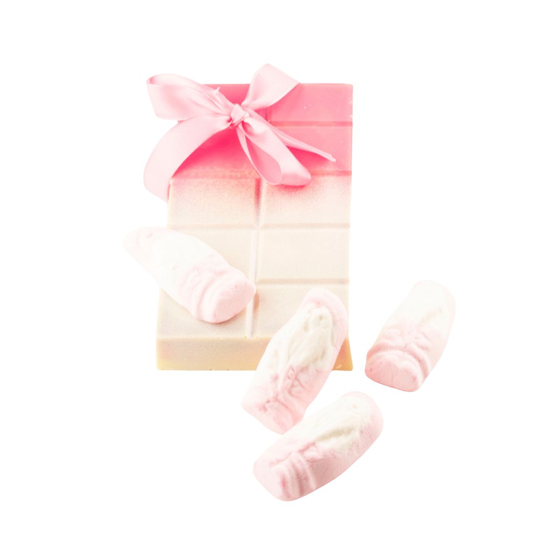 En lekfull tolkning av den klassiska skumtomten – i chokladform. Vit choklad möter hallon, mjuka marshmallows och bitar av skumtomte i en smakexplosion du inte visste att du längtade efter.